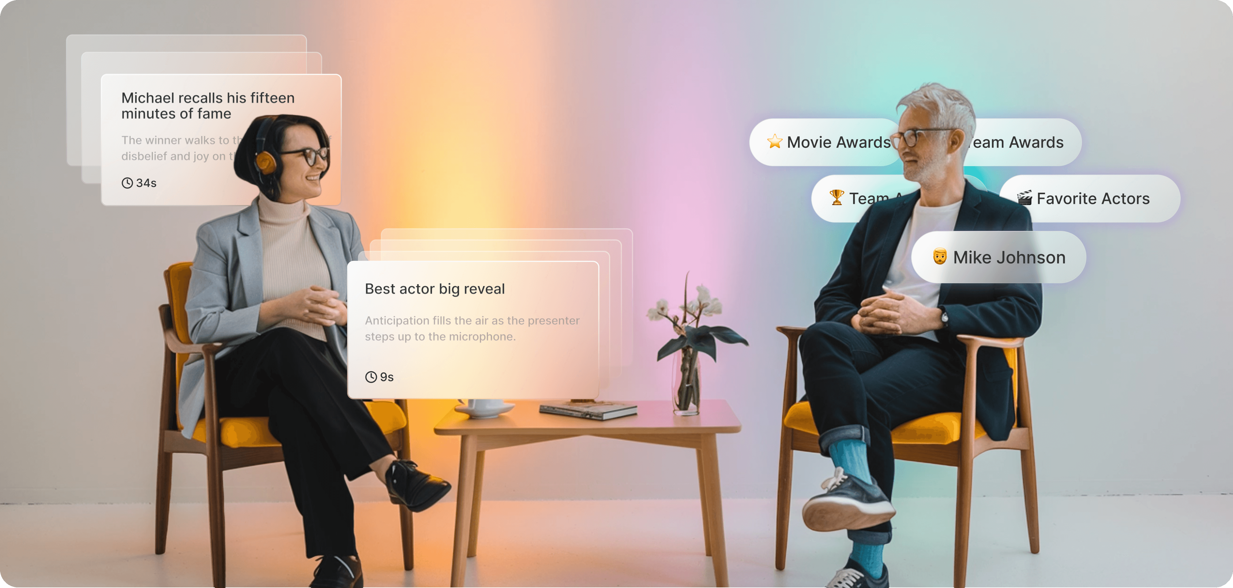 Stop wasting hours to get a single social clip from your long-form videos. Our AI will surface every key moment and topic for you to turn into engaging social clips.